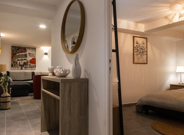 L’appartement, entièrement neuf, se situe en sous-sol (hauteur plafond 2m) de notre résidence principale et dispose d’un accès privé indépendant.