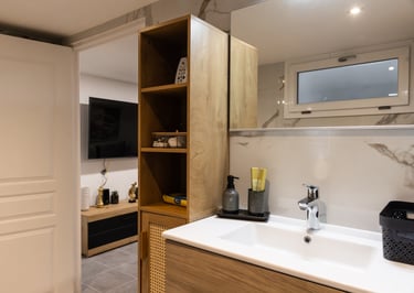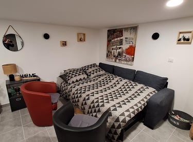 L’appartement, entièrement neuf, se situe en sous-sol (hauteur plafond 2m) de notre résidence principale et dispose d’un accès privé indépendant.