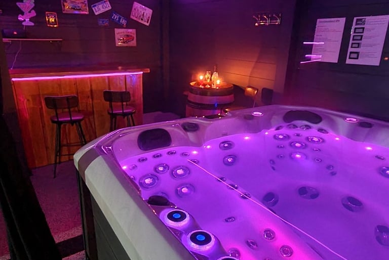 ✅ Accès à notre spa extérieur chauffé, avec espace détente et bar